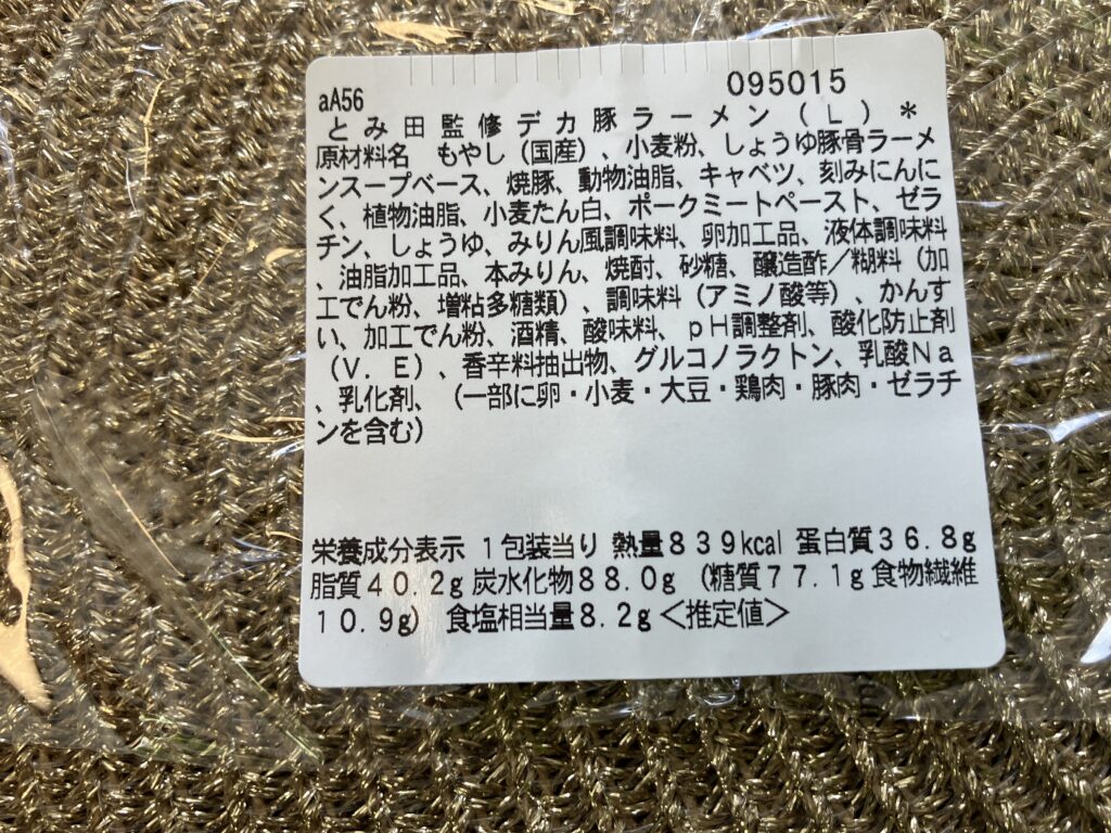 セブンイレブンとみ田監修デカ豚ラーメン原材料